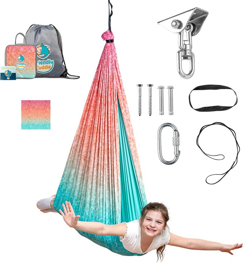 The Friendly Cuddle Indoor Sensory Swing is the perfect addition to any playroom for children between the ages of 2 and 6. This swing provides not only fun but also a unique sensory experience for your child.