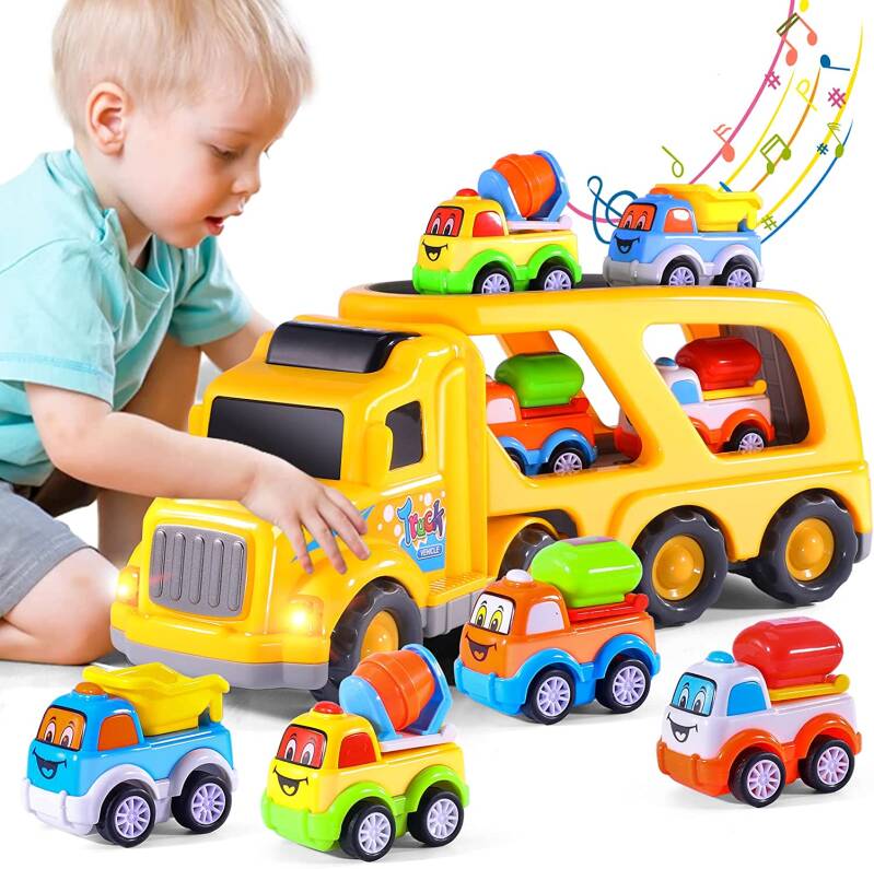 The iHaHa Toy Trucks Car also includes interactive features like flashing lights and a realistic whistle sound when the button on the top of the cab is pressed.