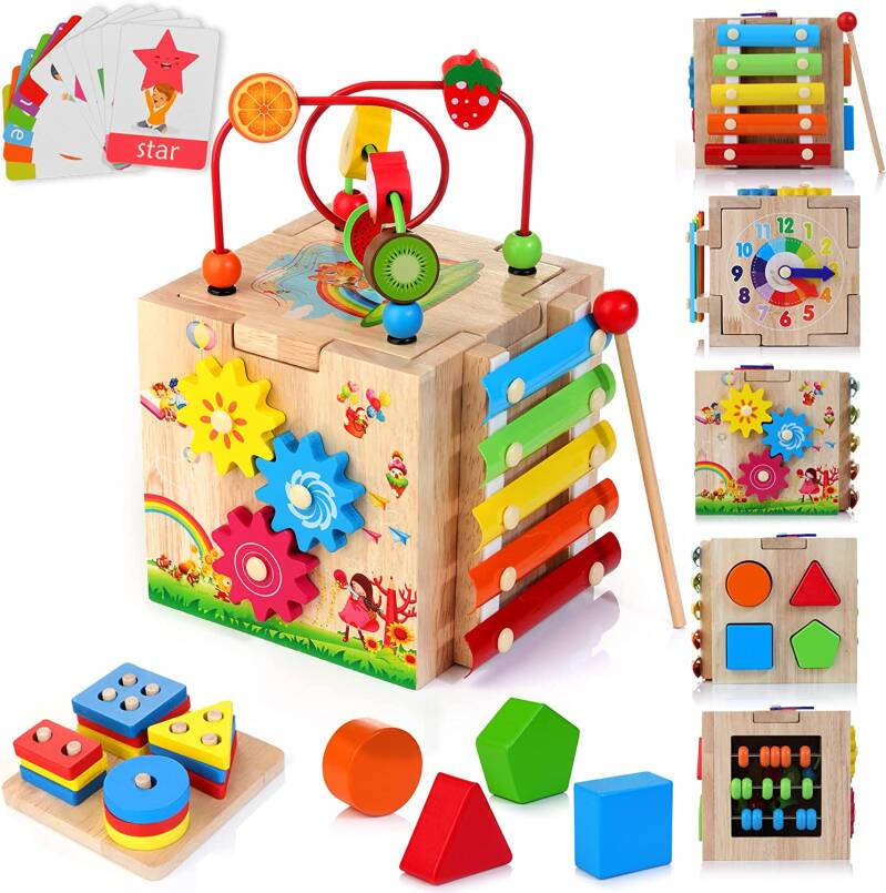 The HELLOWOOD Activity Cube provides a variety of engaging activities that promote learning and development. This 5-in-1 activity cube is made of high-quality wood and is designed with bright colors and fun patterns that are sure to catch a child's attention.